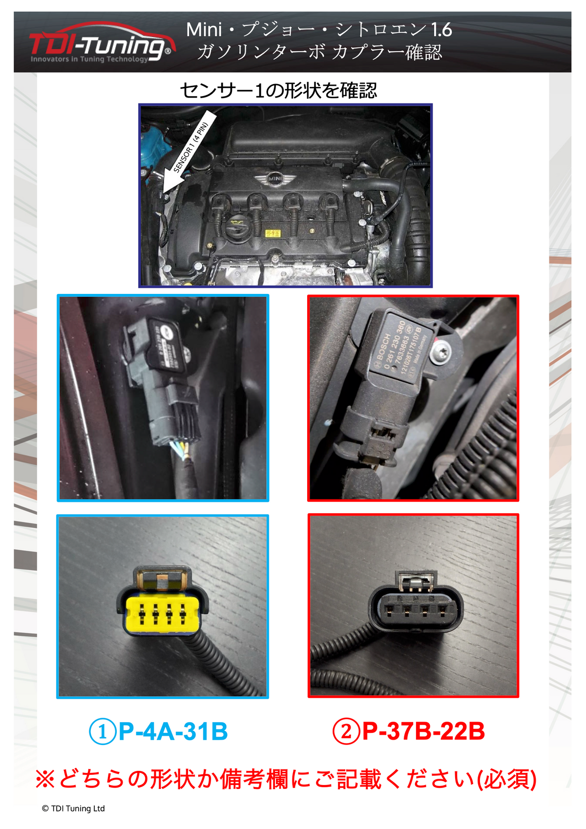 - 適合確認の方は、エンジン・燃料ハーネス・ブーストハーネス(MAPセンサー)の写真を添付お願いします。